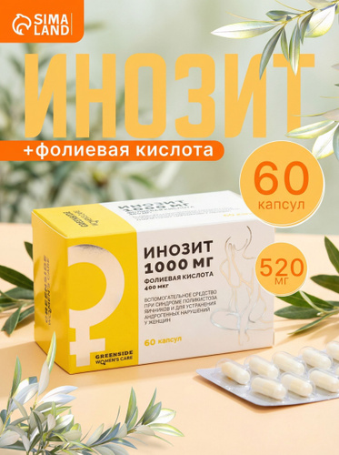 Инозит 1000 мг + фолиевая кислота 400 мк, витамины для женского здоровья, бад при гинекологических нарушениях 60 капсул