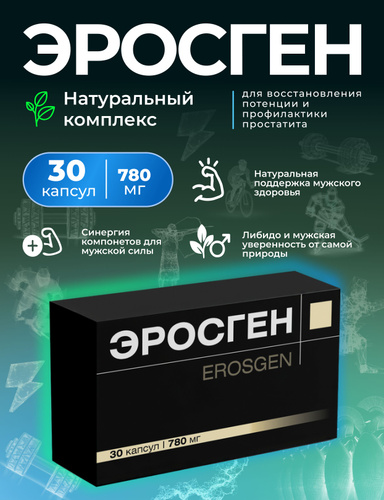 Эросген БАД 30 капсул для потенции, либидо, мужского здоровья, профилактики простатита, горянка, дамиана, пажитник, цинк, селен, витамины В3, Е