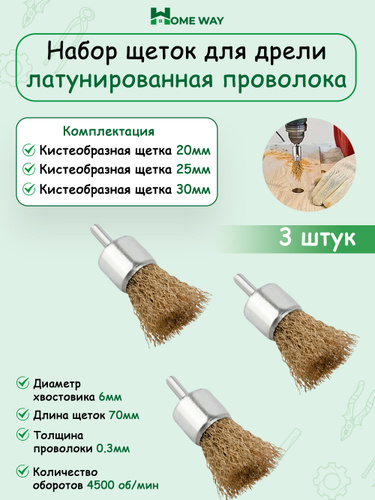Набор щеток для дрели латунированная проволока кистеобразные 0,3 мм 3 шт.