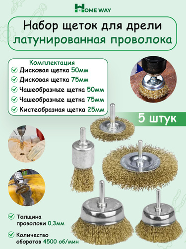 Набор щеток для дрели латунированная проволока 0,3 мм 5 шт.
