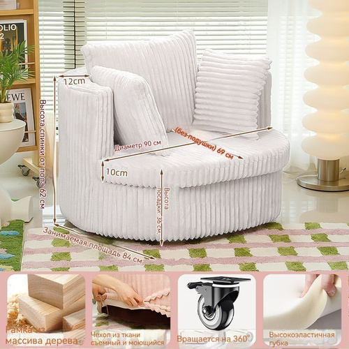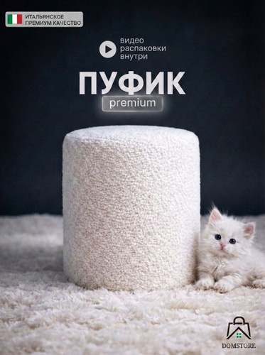 Пуфик в прихожую и спальню, для туалетного столика, DOM Store, букле, белый, 30х30х36 см