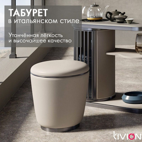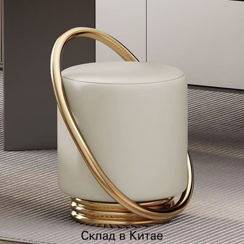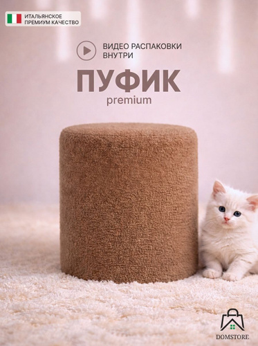 Пуфик в прихожую и спальню, для туалетного столика, DOM Store, букле, бежевый, 30х30х36 см