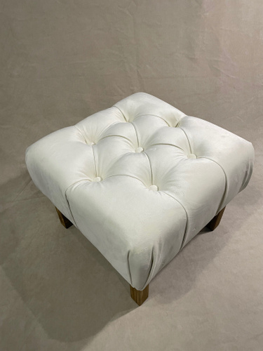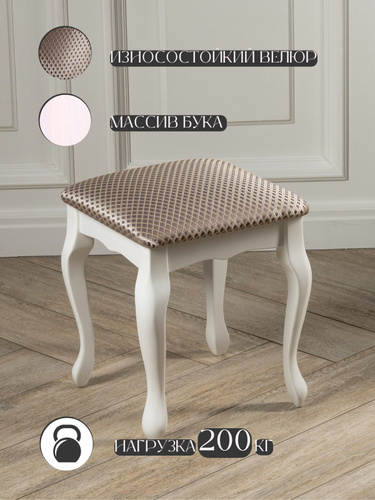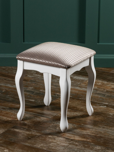 Пуфик из массива бука с мягким сиденьем, обивка жаккард, цвет белый, изящные изогнутые ножки, размер 38x44x38 см для прихожей, спальни и гостиной Мебельная фабрика PUD
