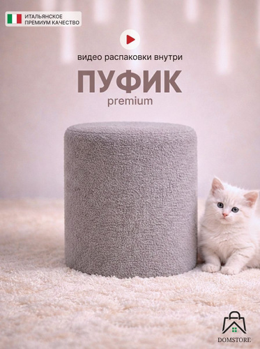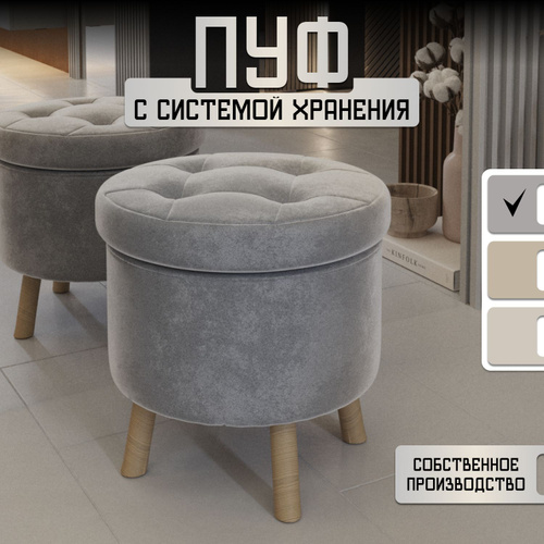 Пуфик в прихожую и спальню, для туалетного столика, DOM Store, букле, серый, 30х30х36 см
