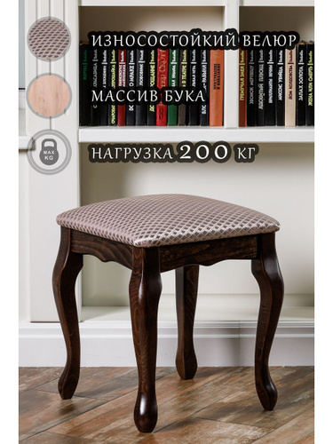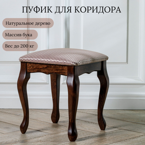 Пуфик из массива бука с мягким сиденьем, обивка жаккард, цвет орех, изящные изогнутые ножки, размер 38x44x38 см для прихожей, спальни и гостиной Мебельная фабрика PUD