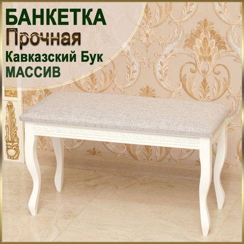 Банкетка YPST0422, 80х47х35, ткань рогожка, деревянная массив на белых ножках, в коридор, прикроватная в спальню / Пуф