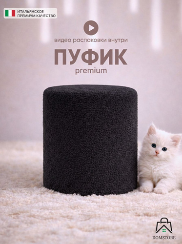Пуфик в прихожую и спальню, для туалетного столика, DOM Store, букле, чёрный, 30х30х36 см