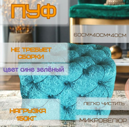 Дудо Банкетка, Велюр искусственный, 43.5х43.5х41.5 см