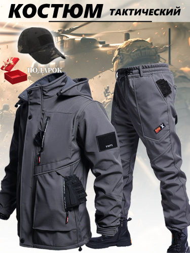 Мужской тактический костюм,Теплый костюм из утолщенной акульей кожи,Одежда для альпинизма/Весна, осень и зима Уцененный товар