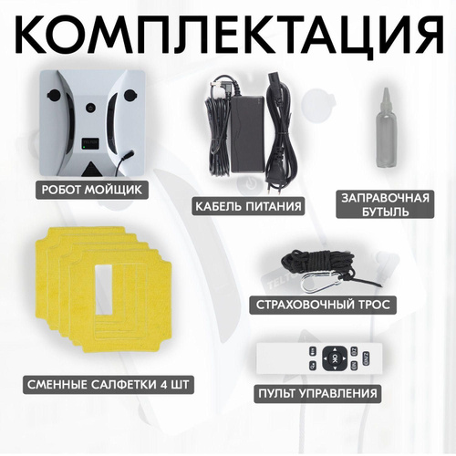 Пароочиститель Робот мойщик окон со сменными салфетками, робот для мойки окон с распылением_ob_oXcn_ob_ol_T_0401sku000054_ob_H5BKh 90 Вт, насадки - 1 шт