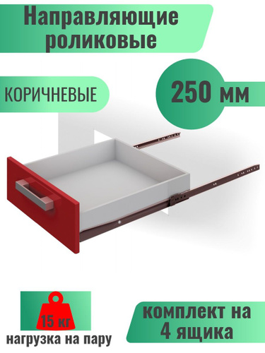 Направляющие роликовые коричневые, 250 мм, 1 комплект на 1 ящик