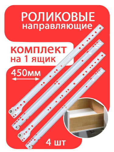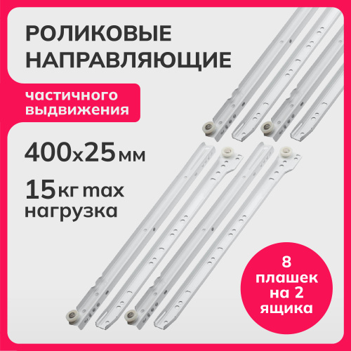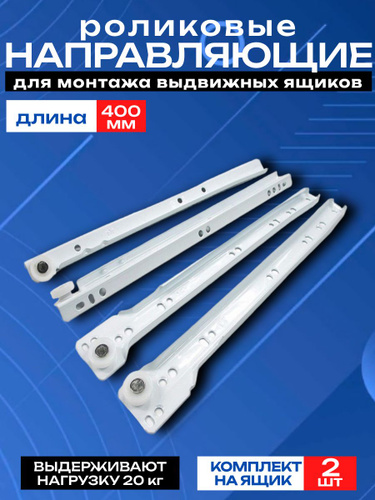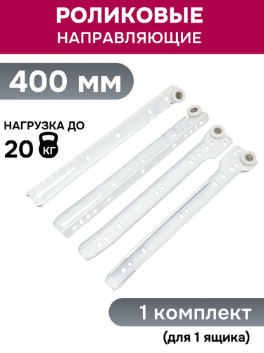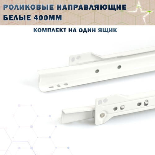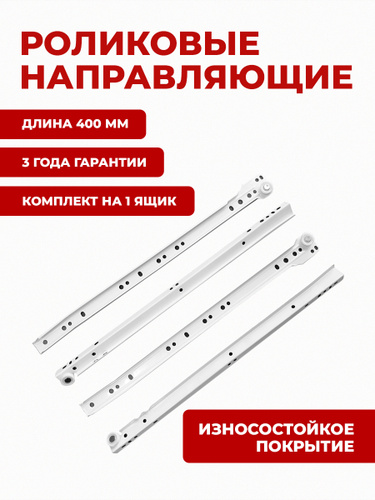 Направляющие роликовые 400 мм белый (2 шт), подходят для всех выдвижных ящиков