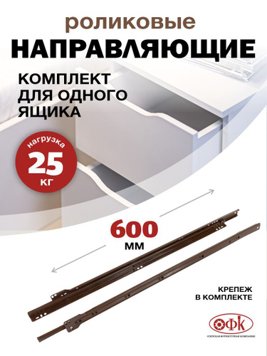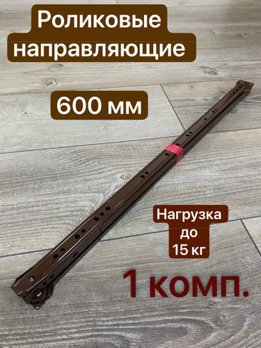 Роликовые направляющие для мебели выдвижных ящиков, полок и тумб, длина 600 мм (нагрузка до 25 кг), Комплект на 1 ящик (4 плашки), коричневый , металл.