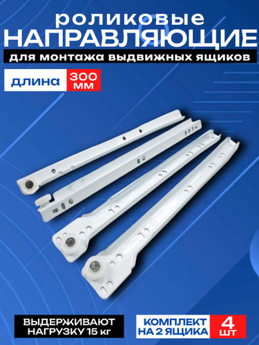 Направляющие роликовые белые 300 мм комплект 2 ящика