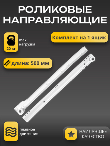 Направляющие роликовые, длина 500 мм, 2 шт, комплект на 1 ящик