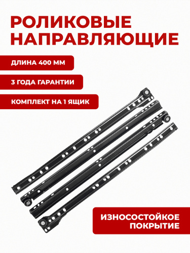 Роликовые направляющие (Комплект направляющих / 400 мм / Для кухни / шкафа/ тумбы)