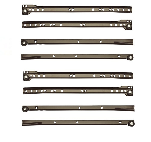 Роликовые направляющие для мебели: для выдвижных ящиков, полок и тумб, длина 250мм (нагрузка до 12кг), Комплект на 2 ящика (8 плашек), коричневый , металл.