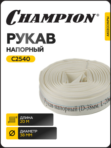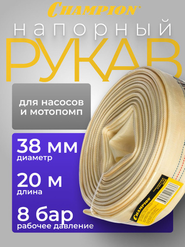 Шланг для полива (ПВХ)/ пожарный рукав напорный для дренажного насоса и мотопомп Champion 1 1/2" (38 мм), 20м