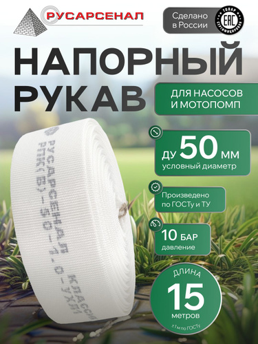 Рукав напорный 50 мм (2 дюйма), 15 м/Шланг поливочный/Рукав для насосов и мотопомп/Шланг для дренажного насоса