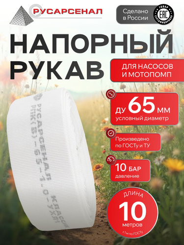 Рукав напорный 65 мм (2 1/2 дюйма), 10 м/Шланг поливочный/Рукав для насосов и мотопомп /Шланг для дренажного насоса