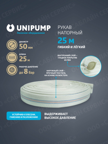 Рукав напорный 50 мм (2 дюйма), 20 м/Шланг поливочный/Рукав для насосов и мотопомп/Шланг для дренажного насоса