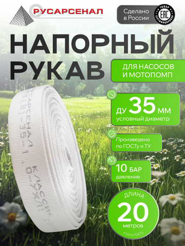 Рукав напорный 35 мм (1 3/8 дюйм, 1 2/5 дюйма), 20 м/Шланг поливочный/Рукав для насосов и мотопомп/Шланг для дренажного насоса
