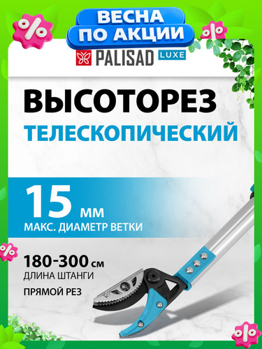 Высоторез телескопический PALISAD LUXE, 1800-3000 мм, алюминиевая штанга и ПВХ-накладка, садовый штанговый сучкорез, 60599
