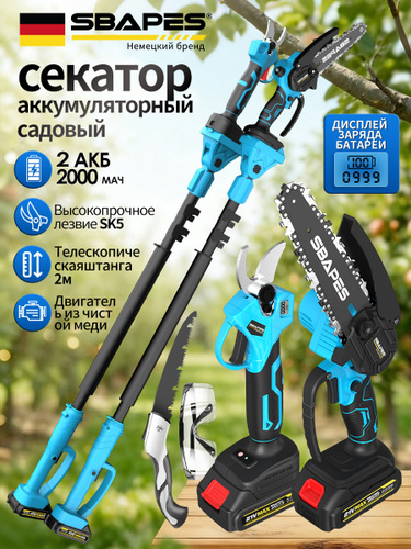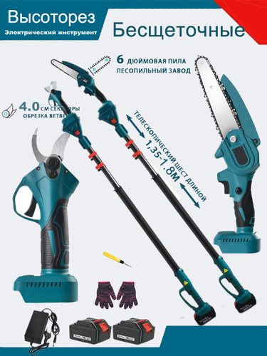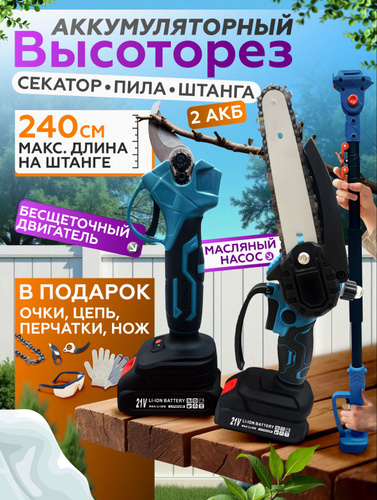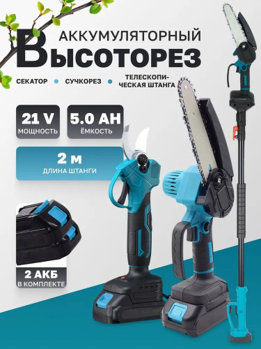 Высоторез пила цепная+секатор - сучкорез аккумуляторный 21В, 2 АКБ в комплекте телескопический
