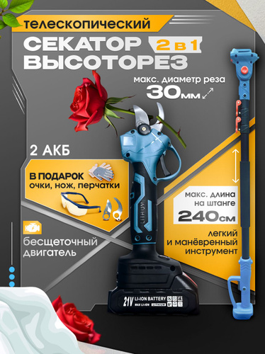 Высоторез аккумуляторный 3 в 1 / Секатор, Пила, Штанга 2 метра