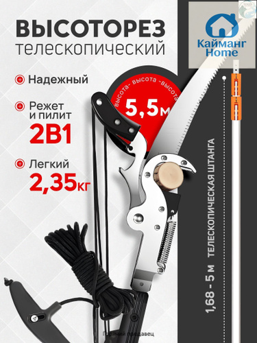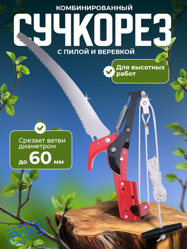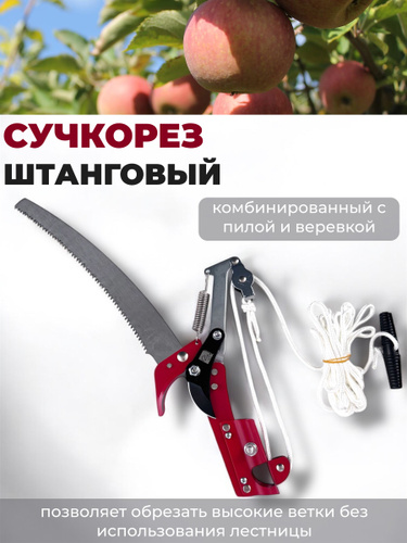 Сучкорез садовый ручной штанговый высоторез комбинированный с пилой и веревкой, секатор для деревьев