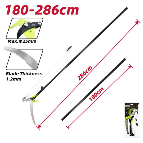 Высоторез-сучкорез с секатором штанговый DELI DL580511 180-286см (2 шкива, сталь sk5, длина лезвия 290 мм, телескопическая рукоятка)