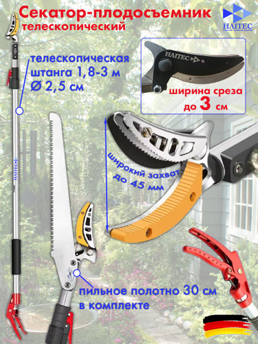 Секатор HAITEC HT-GS203000 телескопический + пила садовая (набор) 3м