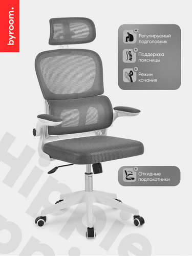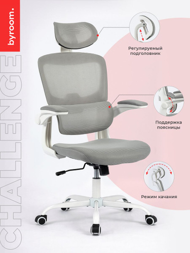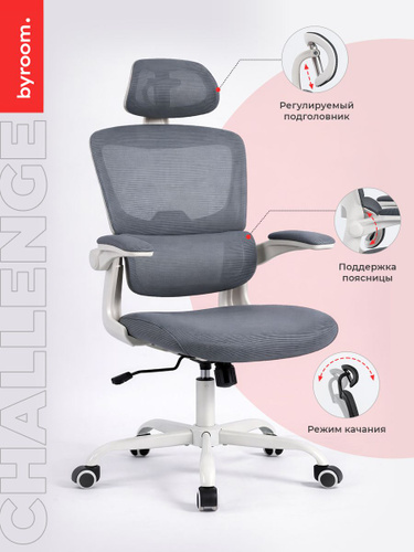 Компьютерное рабочее кресло на колесиках для школьника, руководителя BYROOM Сhallenge dark grey HS-6305W-2-DG. Взрослый крутящийся офисный стул с ортопедической спинкой для работы за компьютером ПК