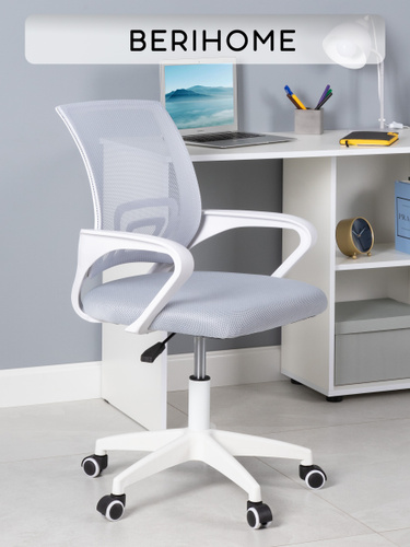 AMI MEBEL Кресло компьютерное офисное игровое, мягкий детский стул для школьника на колесиках, дышащая ткань сетка цвет светло-серый