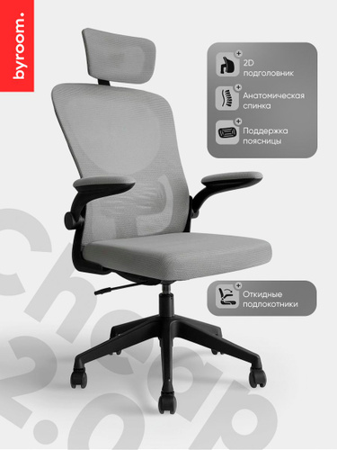 Рабочее компьютерное кресло на колесиках для руководителя BYROOM Office Cheap 2.0 темно-серое. Взрослый крутящийся офисный стул с ортопедической спинкой для работы за компьютером ПК