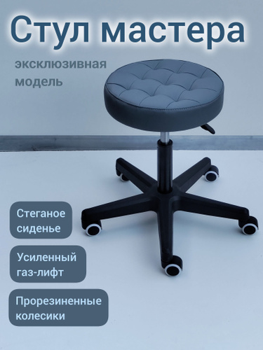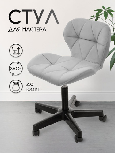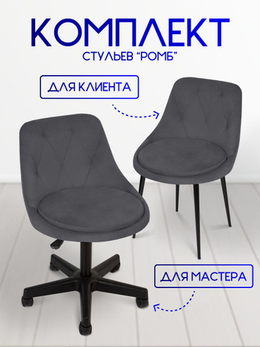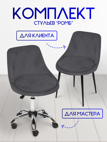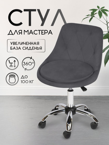 Стул мастера Massagecomplekt Ромб, на колесиках, сталь, велюр, темный-серый