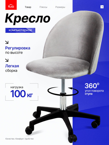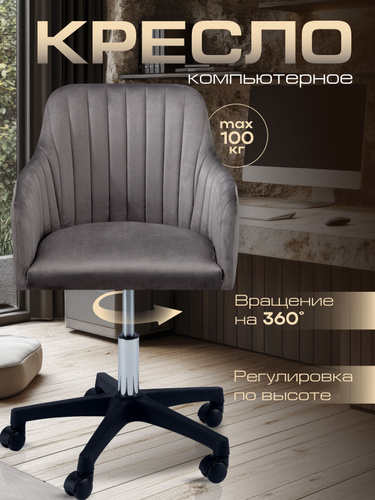 AMI MEBEL Кресло компьютерное офисное игровое, мягкий детский стул для школьника на колесиках, ткань вельвет цвет темно-серый