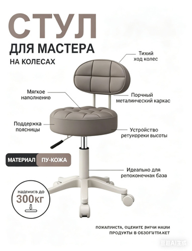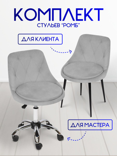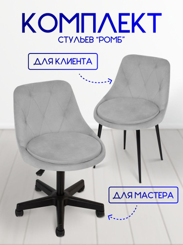 Стулья для мастера и клиента Ромб пластиковое пятилучье светло-серый