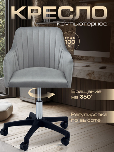 AMI MEBEL Кресло компьютерное офисное игровое, мягкий детский стул для школьника на колесиках, ткань бархат цвет серый