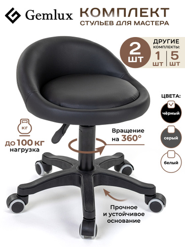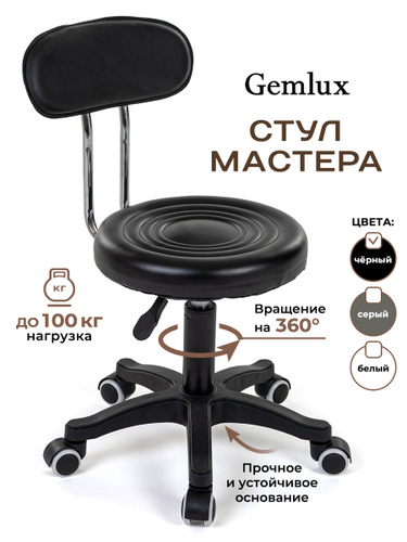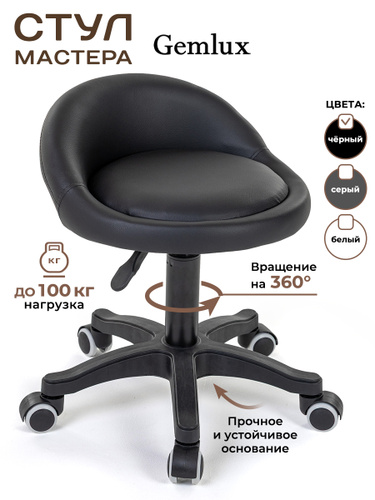 Стул мастера Gemlux GL-BR-003BKP мягкий, на колесиках, с высокой спинкой, цвет черный
