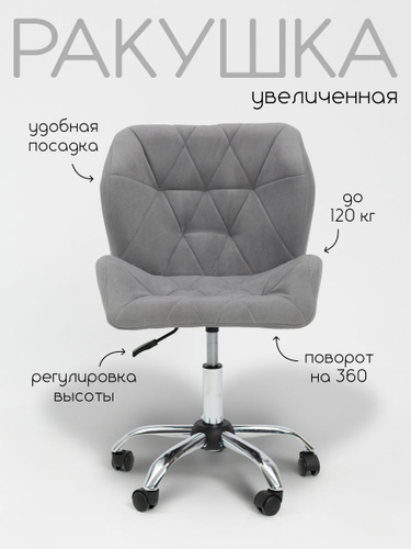 Стул Ракушка велюр на колесах пластик, Massagecomplekt светло-серый