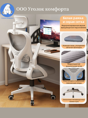 Компьютерное офисное кресло,Детское рабочее кресло Uyutnyy Ugolok ND2003,серый +белый, стул компьютерный,сетчатый/кожаный салон