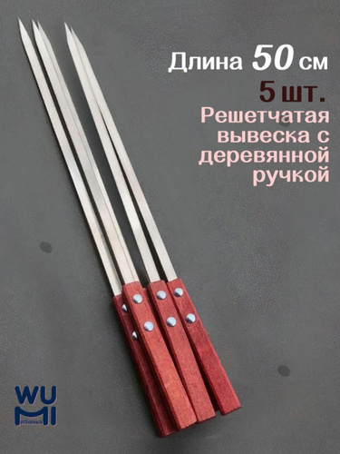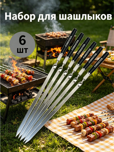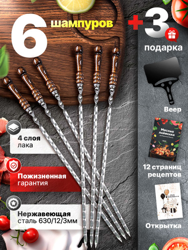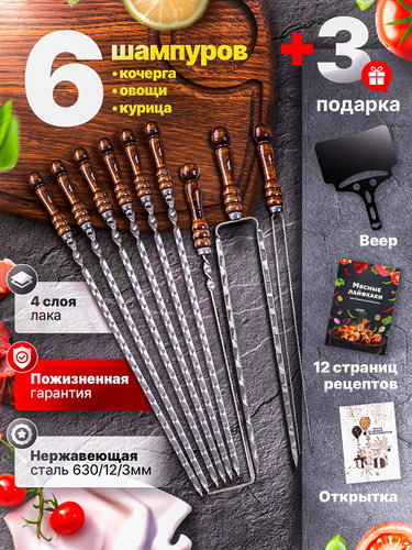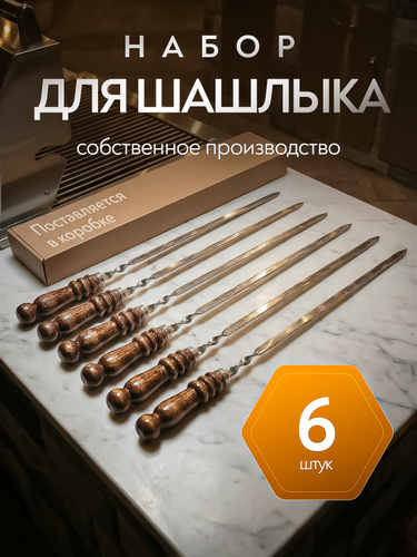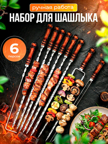 Набор шампуров с деревянными ручками, 6 шампуров для шашлыка