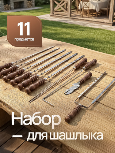 Набор шампуров для мангала 11 предметов,45 см,нержавеющая сталь,деревянные ручки