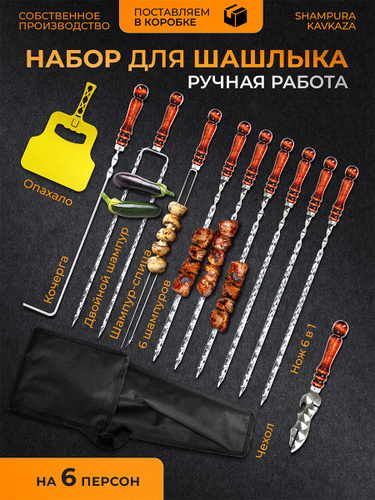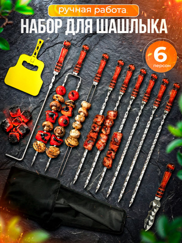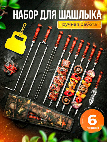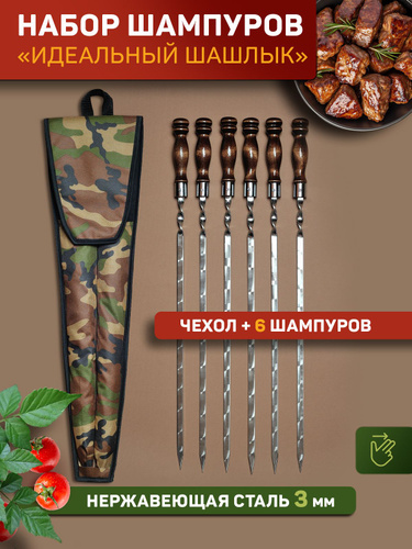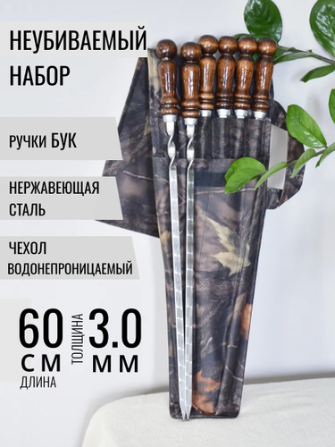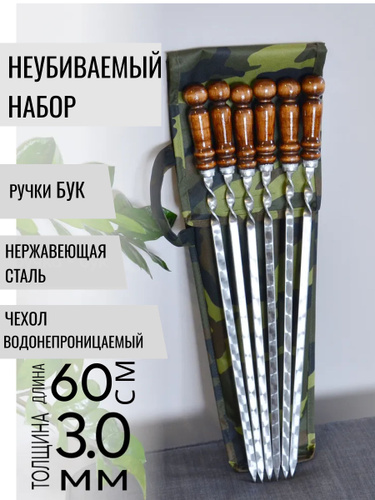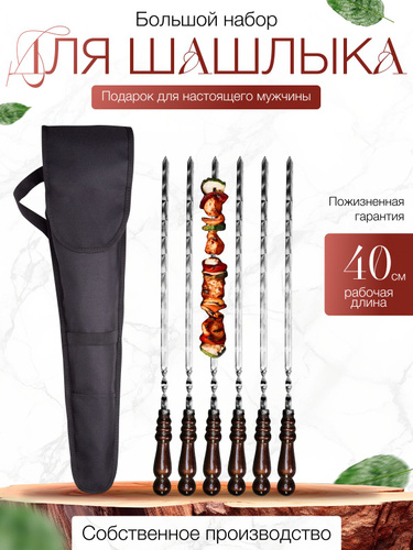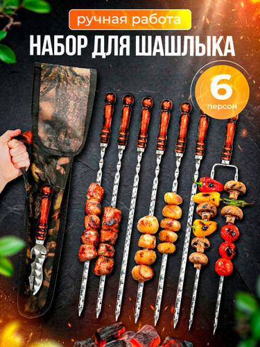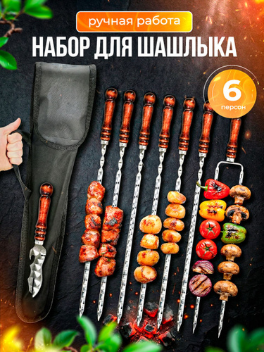 Набор шампуров больших в ЧЕХЛЕ (6 шт), 50 см, с деревянными ручками