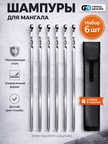 Шампуры для мангала в чехле,набор 6 шт,нержавеющая сталь 3 мм,длина 67 см,прочные квадратные шампура,подарочный комплект