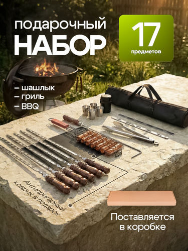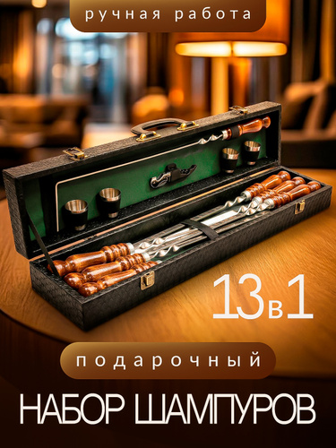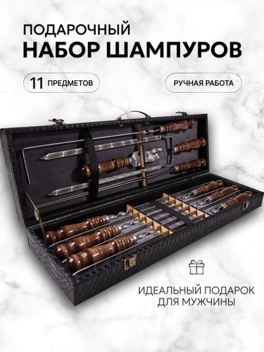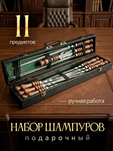Шампура для мангала с деревянной ручкой, подарочный набор