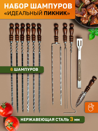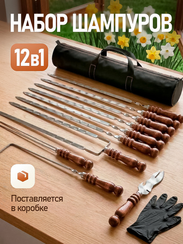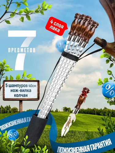 Набор шампуров, 7 предметов для шашлыка, шампура с деревянными ручками