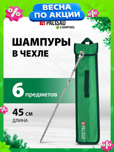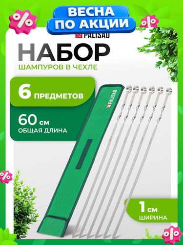Набор шампуров PALISAD Camping, 60 см, 6 штук в чехле, шампура для мангала, 69577