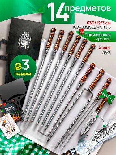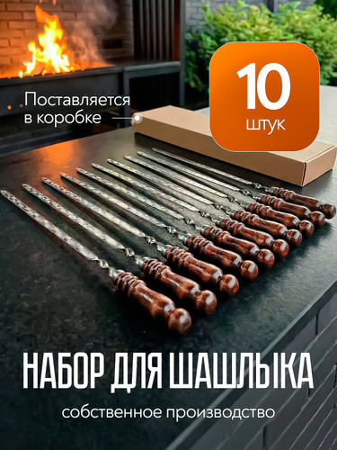 Шампура набор для шашлыка с деревянными ручками, шашлычный набор шампуров подарочный